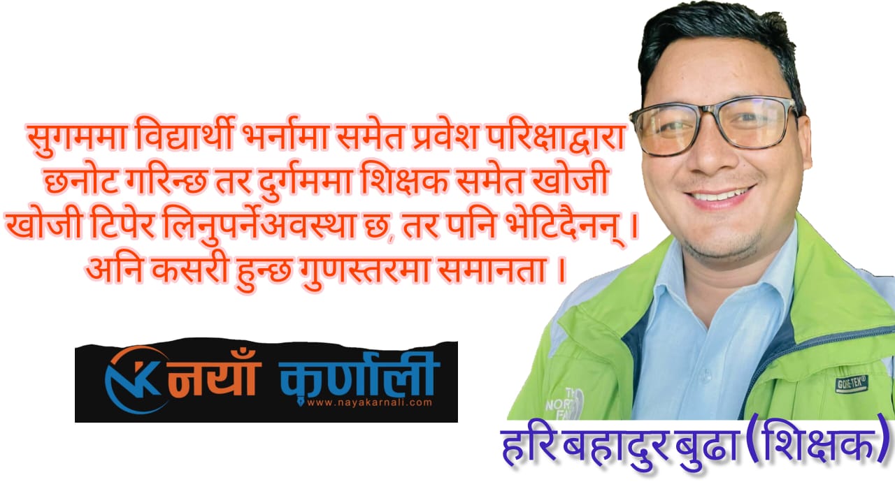 अझैपनि नेपालका दुर्गम तथा ग्रामीण क्षेत्रका विद्यार्थीहरु गुणस्तरीय शिक्षँको पहुँचमा छैनन् । शरिर छ, आत्मा छैन, भनेझै विद्यालयहरु प्रशस्त छन् तर पढाउने विषयगत शिक्षक छैनन्, त्यसमा पनि गणित र विज्ञान विषय शिक्षक । पटक पटक शिक्षा क्षेत्रमा विभिन्न परिवर्तन तथा सुधार गर्ने प्रयास गरिएतापनि नेपालको दुर्गम क्षेत्रका विद्यालयमा विज्ञान/गणित विषय शिक्षकको अभाव गम्भीर समस्या बनेको छ ।